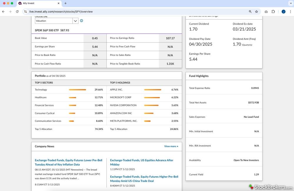 Both Charles Schwab and Ally Invest offer research for stocks, ETFs, mutual funds, bonds, and pink sheets/OTCBB, and both include stock research that taps social media sentiment. Schwab goes further with ESG (Environmental, Social, and Governance) research and the ability to see your portfolio allocation by asset class, which Ally Invest does not provide. For trade ideas, each broker includes stock, ETF, and bond screeners; Schwab also adds a mutual fund screener, which Ally lacks.