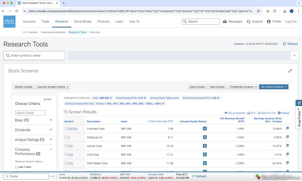 | Stock Research | Charles Schwab | Interactive Brokers | |