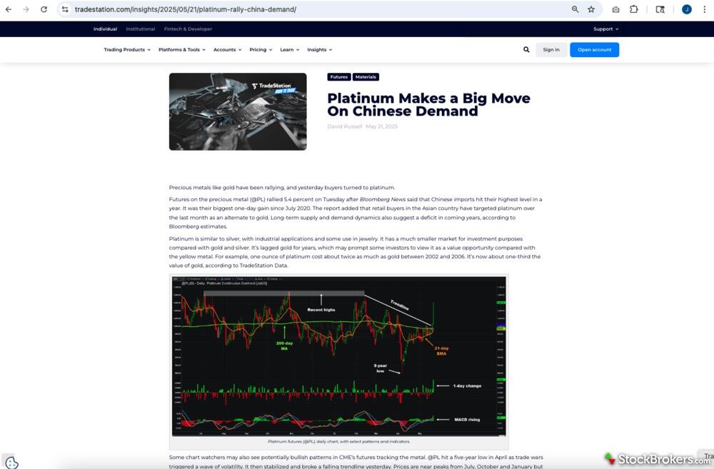 Ratings back this up: E*TRADE earns 4 out of 5 stars for education and ranks #5 of 14 brokers with StockBrokers.com, while TradeStation earns 2 out of 5 stars and ranks #14. If you want a fuller curriculum across asset classes, E*TRADE is the better fit; if you mainly care about stocks and options with practice trading access, TradeStation can cover the essentials.