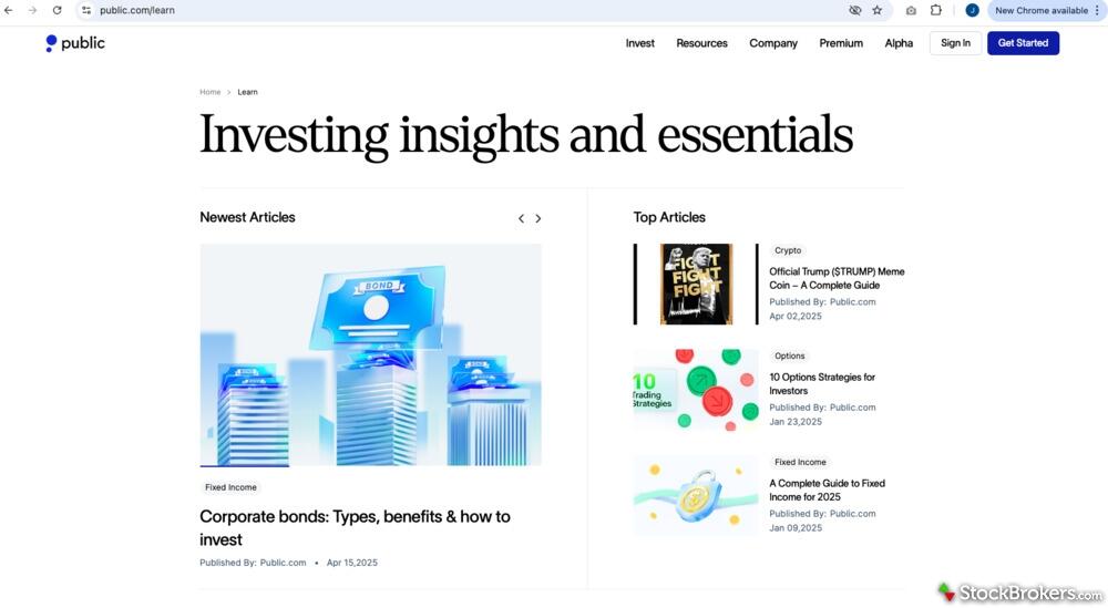 The biggest difference is webinars: Public.com hosts them, while Robinhood does not. In terms of quality, both are rated 3.5 out of 5 stars for education. According to StockBrokers.com, Robinhood ranks #7 out of 14 brokers for education, with Public.com close behind at #8. Choose Public.com if live sessions matter to you, or pick Robinhood if you want similar content paired with a slightly higher third-party ranking.