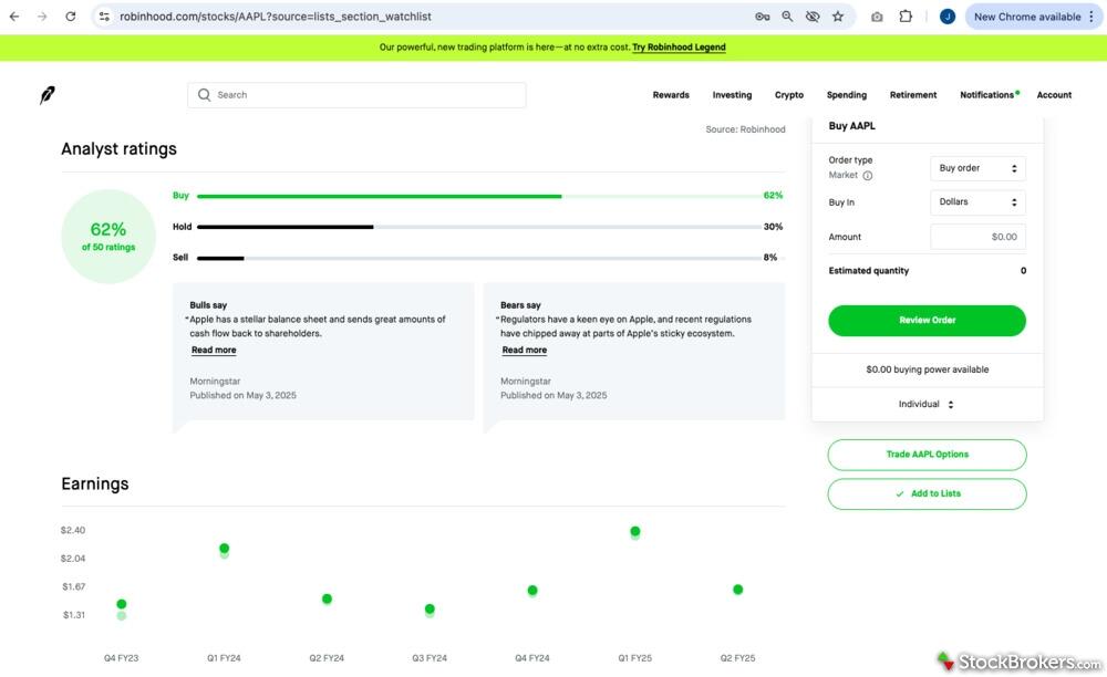 | Active Trading Platform | Robinhood Legend | n/a | |